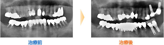 嘔吐反射が強いため義歯を断念、インプラント治療(インプラント11本埋入)を受けられました。